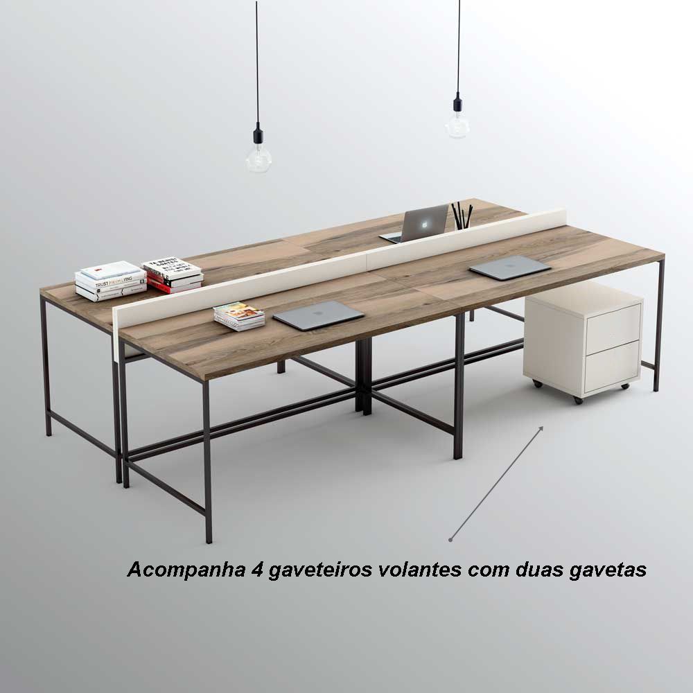 Plataforma de trabalho com 4 lugares e 4 gaveteiros volantes