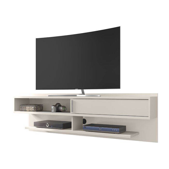 O centro de entretenimento flutuante oferece amplo espaço para ajudar a gerenciar e resolver todas as suas necessidades de mídia. Os controles remotos, livros, fios, agora permanecem no seu lugar sem serem acidentalmente extraviados com uma porta deslizante da prateleira para ocultar fios ou acessórios de mídia. O sistema de jogo, o DVD player ou o Blu-ray player são gerenciados e organizados, enquanto a sua TV recebe a vitrine que merece, com uma base grande o suficiente para tratar seus convidados para proporcionar entretenimento de primeira classe, um cenário elegante.